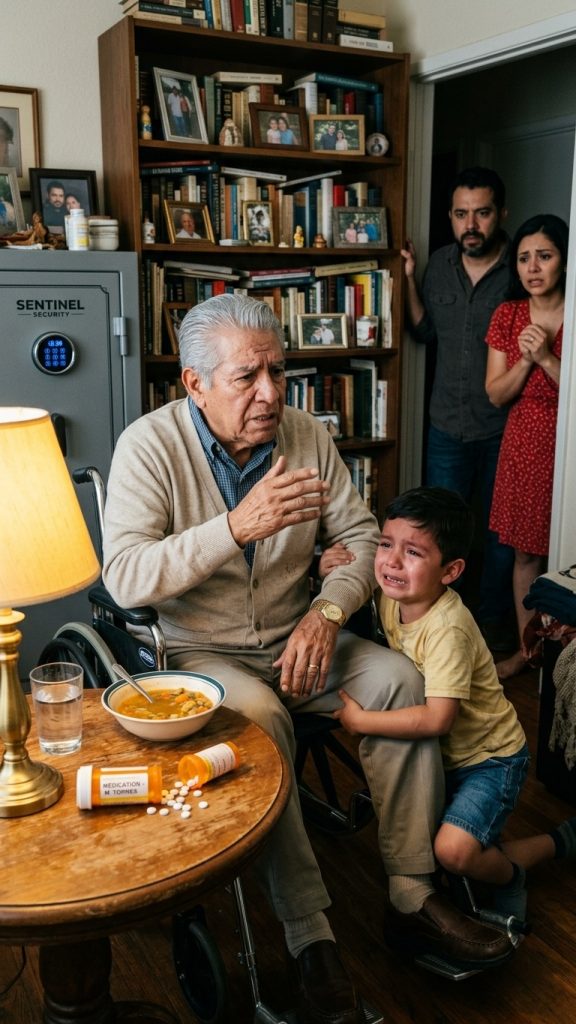 Don Alejandro nousi pyörätuolistaan osoittaen voimansa ja päättäväisyytensä. «Luulisi, että kehoni on heikko… mutta sydämeni suojelee aina perhettäni», hän sanoi.