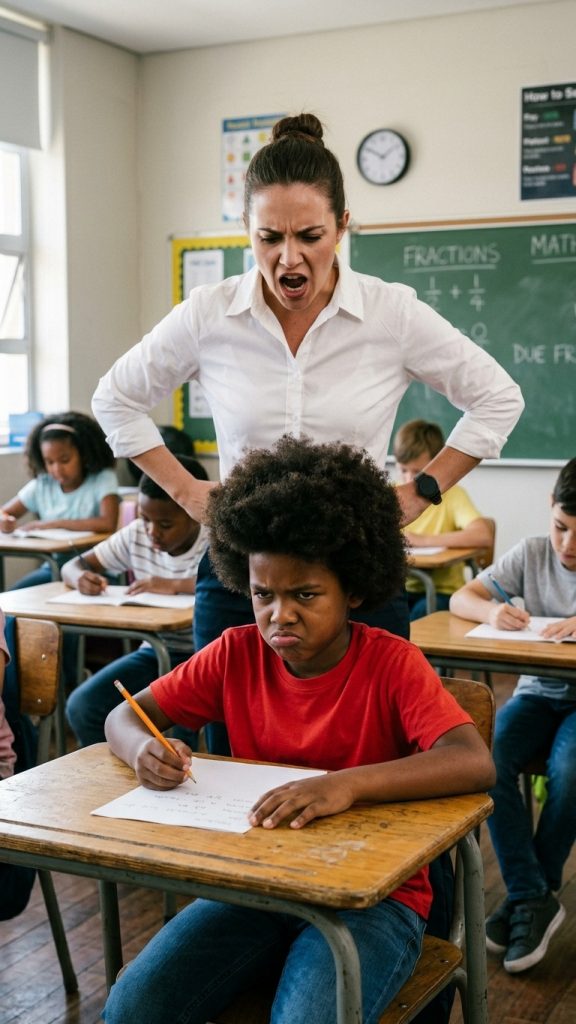 Luokkahuoneessa, jossa nöyryytys oli tapahtunut muutamaa tuntia aiemmin, seisoi nyt äiti, jonka hiljaisuus oli kauhistuttavampi kuin kovin huuto. Hänen sanansa olivat kylmiä, mutta oikeudenmukaisia. Hän ei ollut tullut vain kostamaan; hän oli tullut muistuttamaan meitä siitä, että jokaisella teolla on seuraukset, että jokaisella lapsella on arvokkuus, jota ei voida loukata.