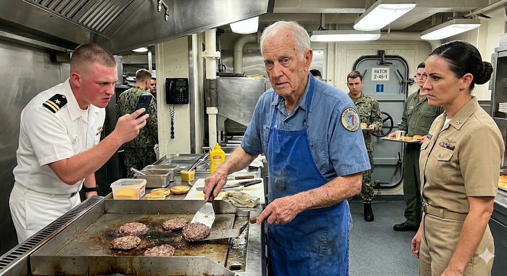 USS Holsteadin ruokasali oli hallitun kaaoksen sinfonia. Lautaset kilisivät, kengät kolisivat liukumattomalla lattialla, ilma täyttyi teollisuuspuhdistusaineen ja palaneen sipulin hajusta. Toisille se oli vain velvollisuus. Thomasille se oli rytmi.