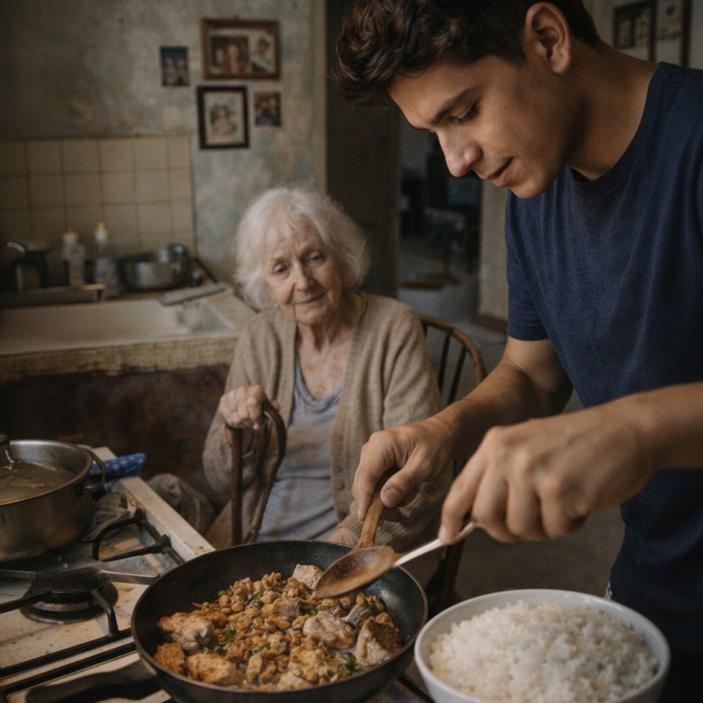 Ajan myötä hän alkoi huomata todellisuuden: tyhjä jääkaappi, vähän ruokaa, lääkepusseja, vapisevat kädet. Ja jokin muuttui. Hän ei enää vain siivonnut. Hän alkoi tuoda ruokaa, laittaa ruokaa, auttaa, olla lääkärin mukana.