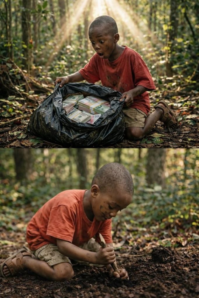 Yrittäessään rakentaa pientä suojaa metsään hän törmäsi vahingossa haudattuun mustaan säkkiin, joka oli täynnä rahaa – niin paljon rahaa, että sitä oli mahdotonta laskea.