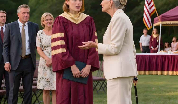 Isoäitini saapui, kuten aina, viimeisenä – ja teki vaikutuksen. Seitsemänkymmentäkahdeksanvuotiaana hän näytti moitteettomalta: hopeanväriset hiukset, vaalea puku, rauhallinen itsevarmuus, joka oli rakentanut oman imperiuminsa. Kun hän otti paikkansa isäni vieressä, hänen lyhyt hyväksyvä nyökkäyksensä antoi minulle voimaa selviytyä, kunnes kävelin lavalle.