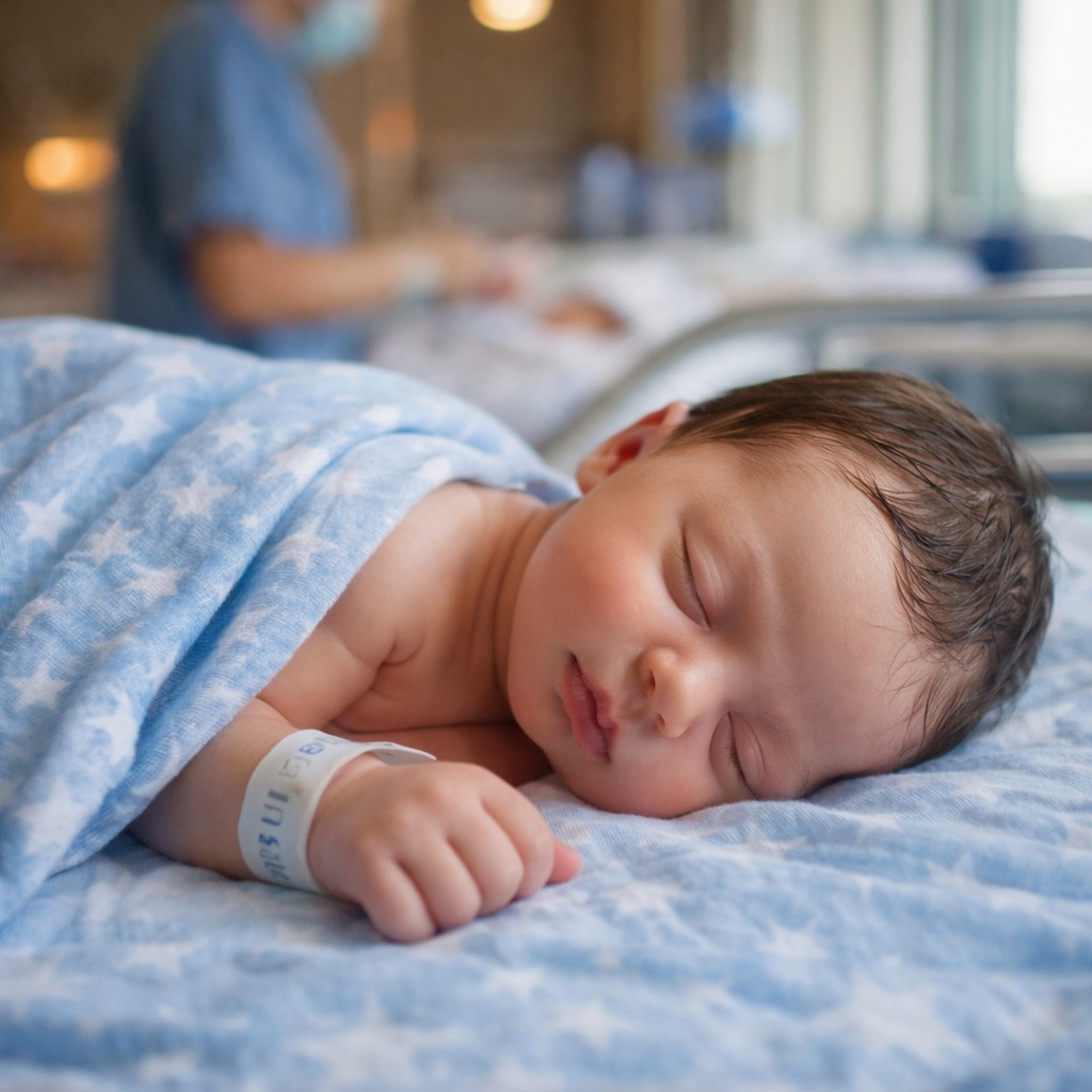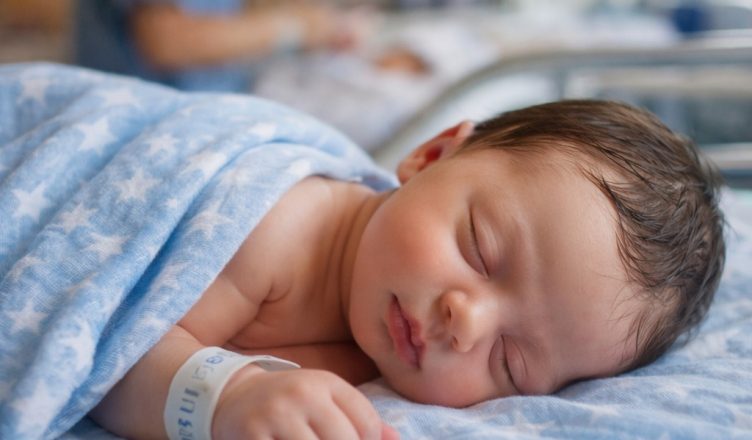 Sairaanhoitaja toi vauvan sisään. Hän itki kovaa, kasvot punaiset.