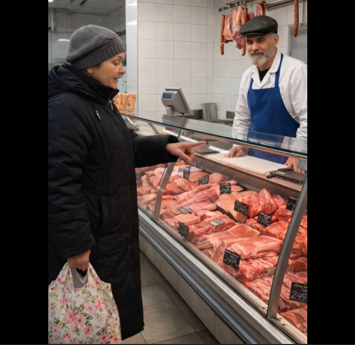 Teurastaja – nuori mies – yllättyi joka kerta. Neljäkymmentä kiloa! Se oli melkein puolet ruhosta. Aluksi hän luuli naisen ruokkivan suurta perhettä. Mutta viikko toisensa jälkeen tilanne toistui.
