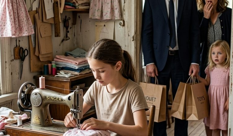 «Hän on sairas», hän kuiskasi. «Ole hyvä… anna minun viimeistellä tämä ompelu.»